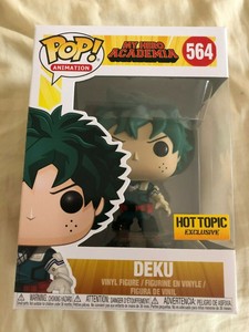 3 3/4 tall vinyl by funko condition of deku hot. Hot topic has another exclusive of deku in his cool, green battle suit.